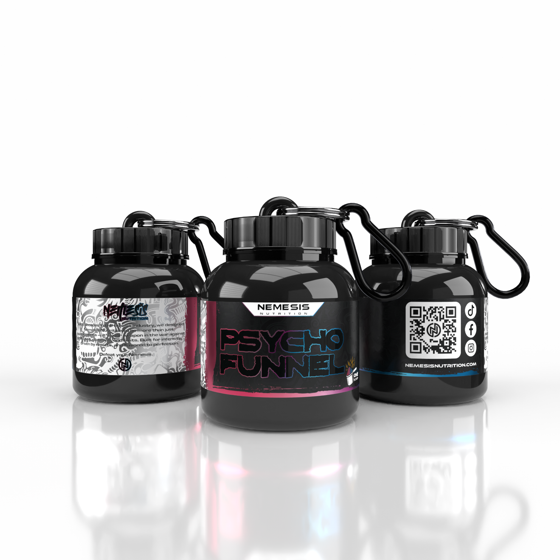 The Psycho Funnel keeps your stack locked and loaded.Leak-proof, travel-ready, and built for lifters who stay on the move. Fill it. Pack it. Dominate your next session. ⚔️